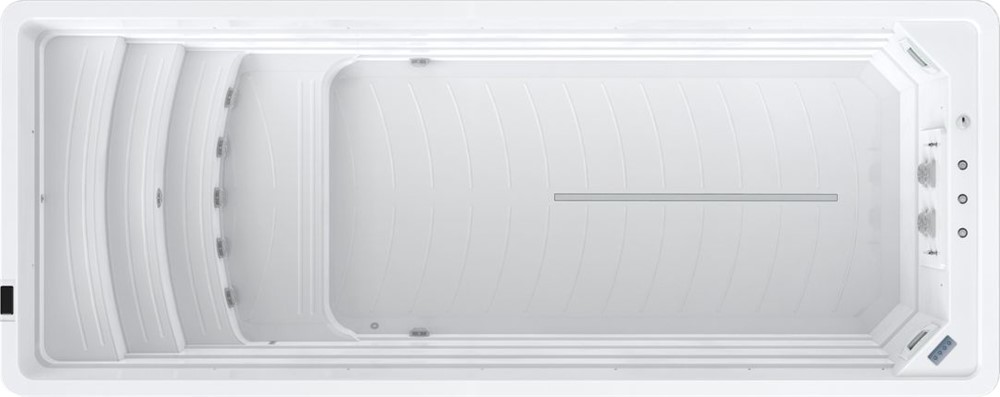 Dank leistungsstarker Turbodüsen erzeugt der Schwimm-Spa einen gleichmässigen Gegenstrom, der sowohl für Einsteiger als auch für ambitionierte Schwimmer geeignet ist. Das großzügige Beckenvolumen von über 11’000 Litern sorgt für stabile Wasserströmung und ein besonders natürliches Schwimmerlebnis.