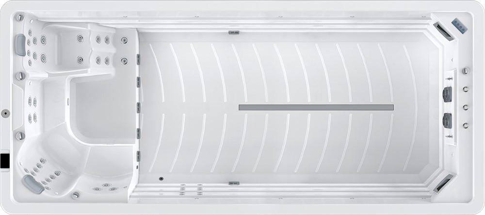 Die 4 parallelliegenden Gegenstromdüsen erzeugen den optimalen Strom zum Schwimmen. Durch die manuelle Druckeinstellung können Sie den erforderlichen Wasserfluss auf Ihr Training anpassen, sanft für ein relaxtes Brustschwimmen oder kräftig für ein sportliches Crawlen.
