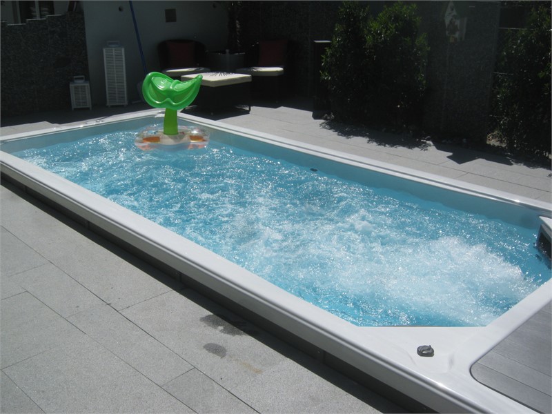 dank den leistungsstarken gegenstromdüsen im schwimmspa ist es möglich auf knapp 4 m länge ein schwimmtraining zu absolvieren. durch die verstellmöglichkeiten der gegenstromanlage kann man sowohl klassisch kraulen, brustschwimmen oder auch den butterfly-stil schwimmen. der schwimmspa eignet sich aber nicht nur zum schwimmen, sondern auch für zahlreiche weitere wassersportarten.