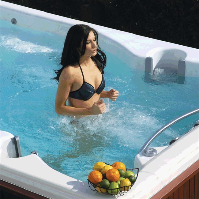 Schwimmen auf knapp 6 Metern? Die Gegenstromanlage im Schwimmspa macht es möglich. Heisst: Im Gegensatz zum Swimming Pool können Sie dank den starken Düsen Ihr Schwimmtraining oder auch Ihr Aqua-Workout auf kleinerem Raum ausüben.