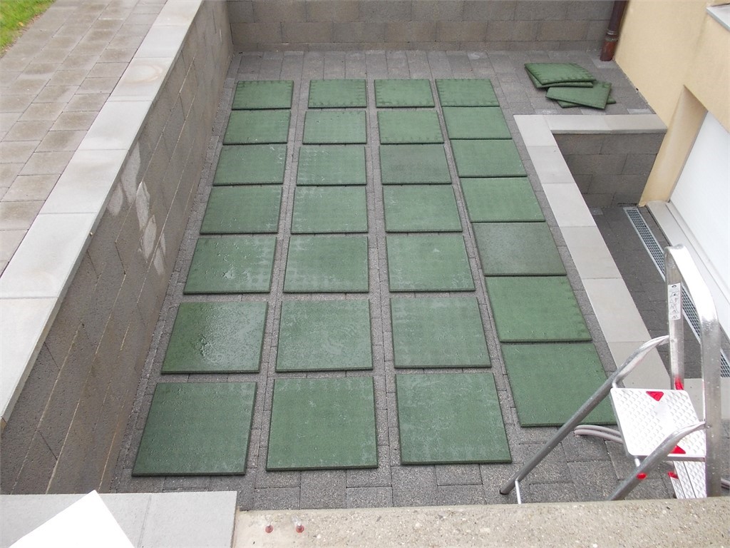 Die Distanz zwischen Schwimmspa und den Seitenwänden kann mit Gartenplatten, Holzrost usw. überbrückt werden. Diese Anpassungen müssen für Servicearbeiten wieder demontierbar sein. Allfälliges Regenwasser muss (auch bei sehr starkem Regenfall) jederzeit problemlos ablaufen oder versickern können. Klären Sie das am besten mit Ihrem Bauleiter oder Gartenbauer ab.