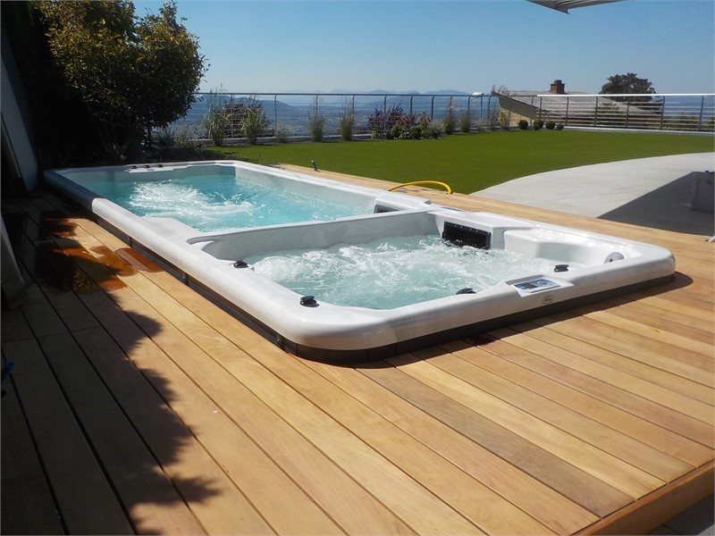 Der meistverbreitete Stromanschluss unserer Schwimmspa-Modelle ist 380 VAC (3x16A). Die Stromanbindung an den Schwimmspa muss durch einen Elektriker sichergestellt werden. Bei einem Schwimmspa mit zwei getrennten Becken muss der Elektriker zwei Stromanbindungen sicherstellen.